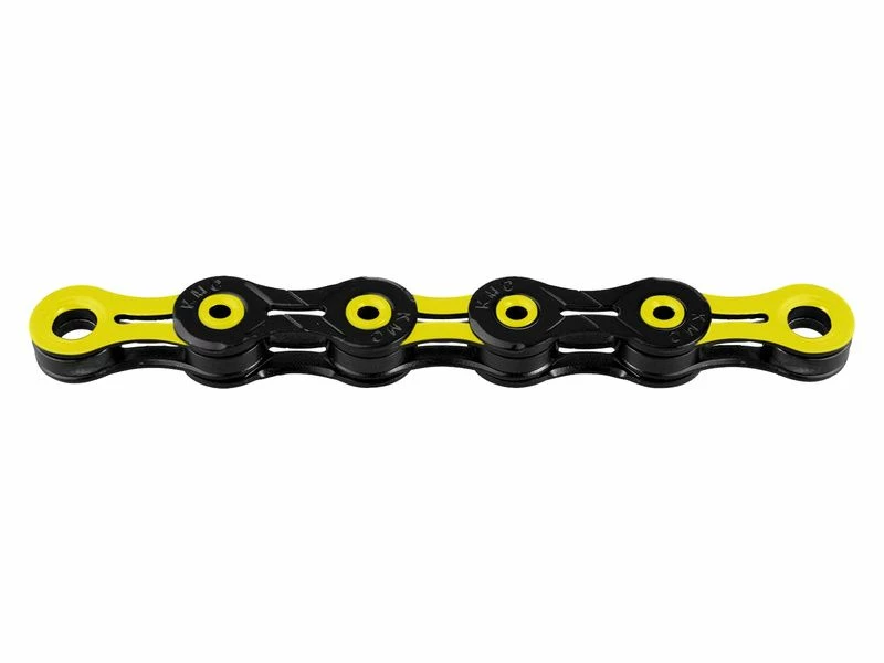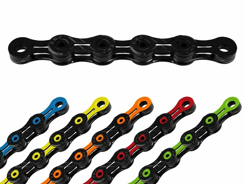La chaine KMC DLC 11 vitesses compte désormais 118 maillons. Tous ajourés ils bénéficient du traitement Titanium Carbon Nitride (TiCN) qui augmente sensiblement la résistance aux frictions et à l’usure. Les passages de vitesses sont ainsi encore plus efficaces et précis. Les rivets, creux eux aussi, et les rollers sont conçus avec un traitement thermique unique qui se rapproche du procédé de fabrication des diamants de synthèse. Ils sont ainsi ultra résistants et offre une durée de vie inégalée. Pour ne rien gâcher cette KMC DLC 11 est particulièrement esthétique et disponible en plusieurs coloris.