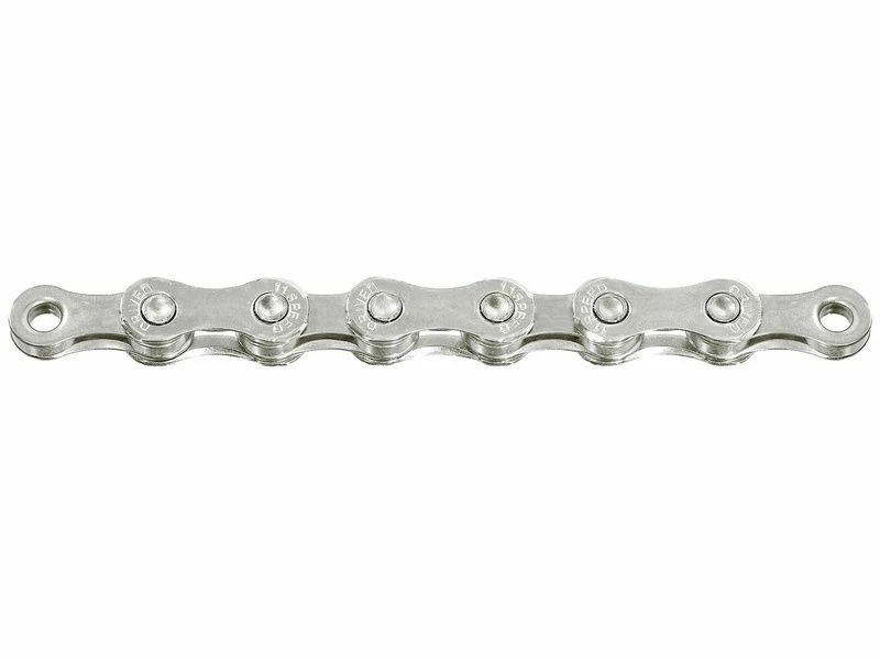Chaine 11 vitesses Sunrace CN11A Argent, dotée de 116 maillons et livrée avec son attache rapide. Compatible avec toutes les transmissions 11 vitesses.
